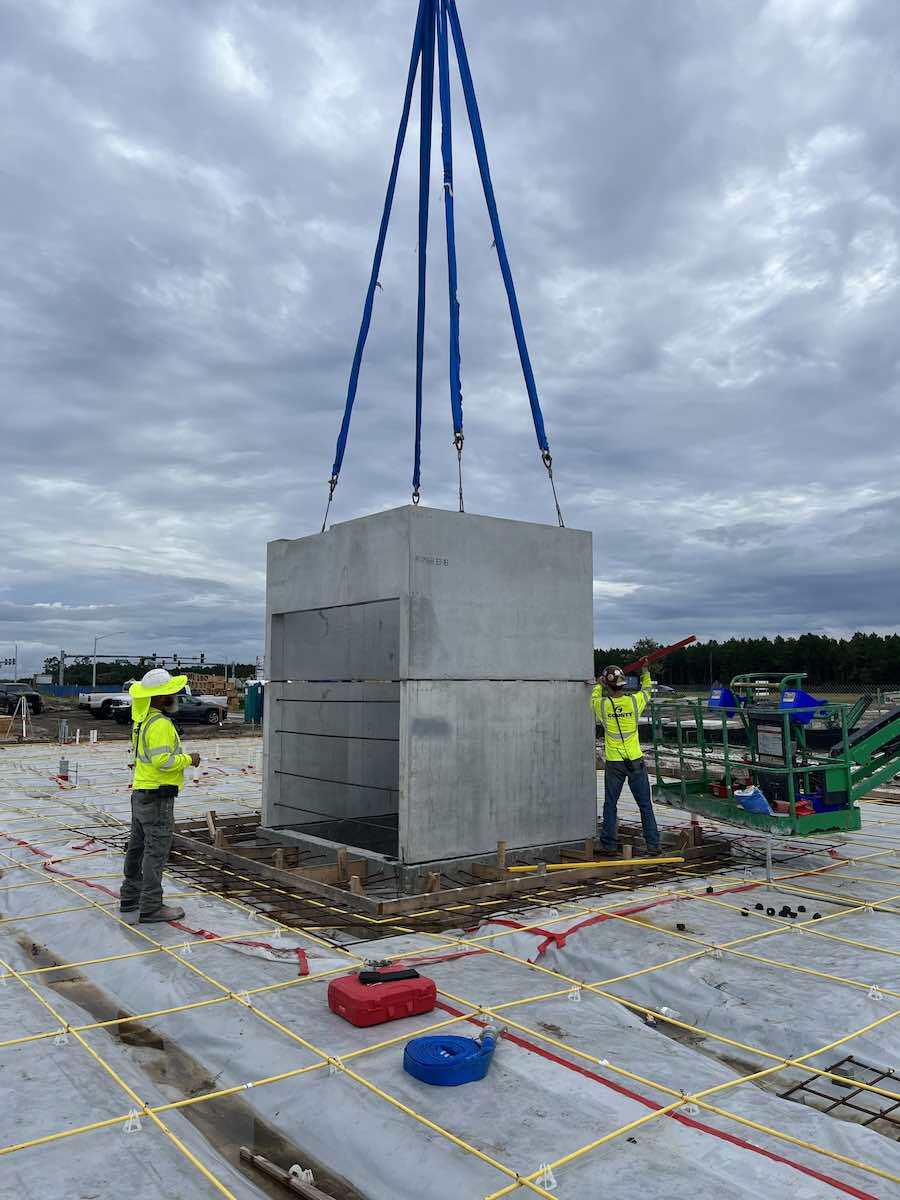 When the largest multifamily builder in the southeast decided to build a four-story apartment building in St. Augustine, Florida, project leaders specified County Prestress & Precast's Elevator Shafts for their efficient installation and high fire ratings. Precast elevator shafts are manufactured to specification and delivered on-site ready for installation, allowing for shorter construction timelines than conventional shafts. County Prestress & Precast carefully coordinated the delivery and installation of eight elevator shafts to safely complete the project within nine days, despite weather delays.