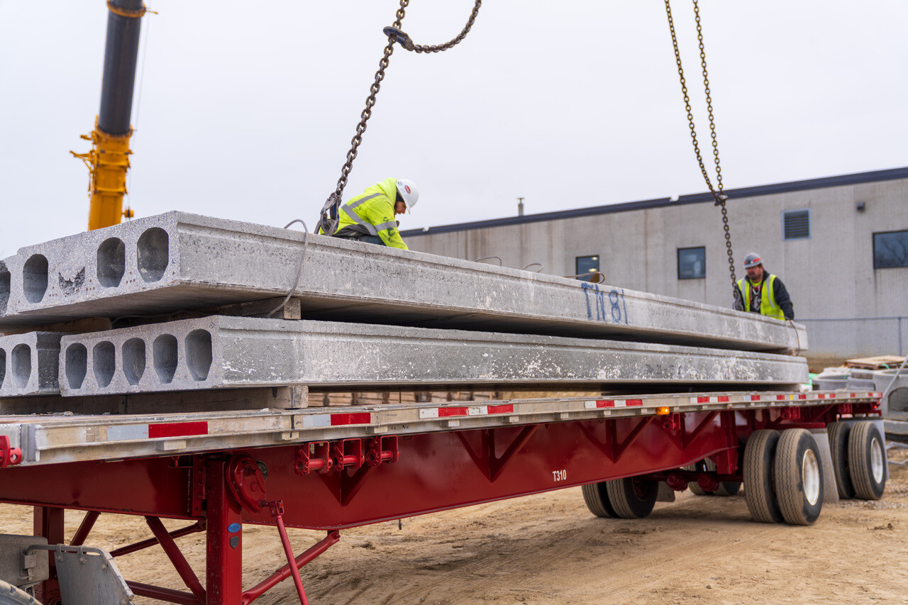 The City of Tonka Bay, MN expanded into the multifamily housing market to accommodate residents wanting to stay and downsize in the area. Tonka Village was the first residential community built as part of the initiative. The project outlined the construction of two five-story residential structures. Hollowcore was specified for the buildings’ podiums for its high-performance strength and installation efficiencies. We utilized our enhanced production capacity to manufacture 54,700 SF of prestressed hollowcore planks and solid slabs with short lead times.