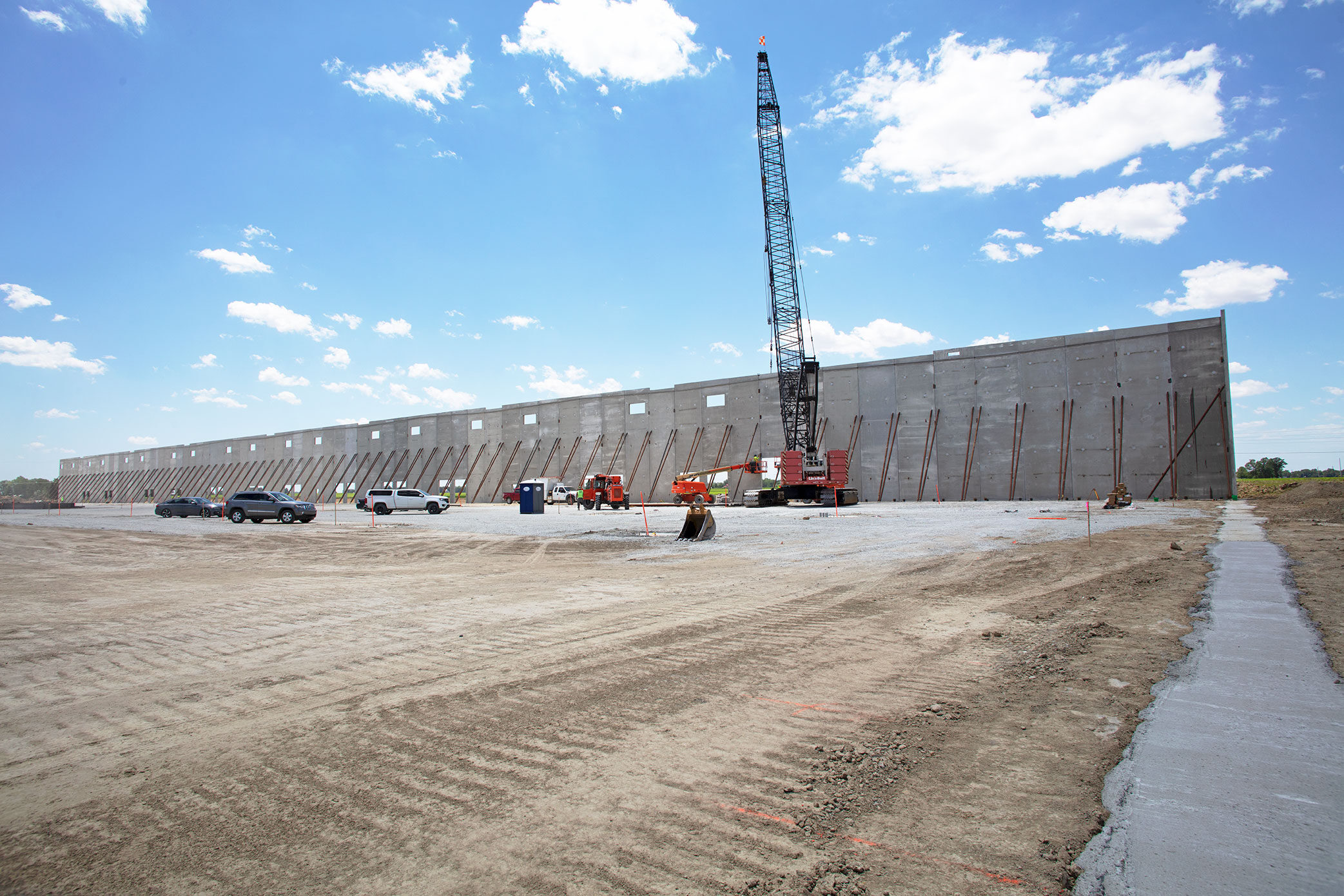 After two successful collaborations with general contractor Compass Commercial Construction Group, project leaders at the Hub I-65 Industrial Park once again specified our insulated wall panels for the envelope of a third building. For large-scale projects that demand installation efficiency and lasting performance, insulated wall panels are an economical material choice. We manufactured and delivered 234 insulated wall panels to complete this project in less than a month in winter conditions.